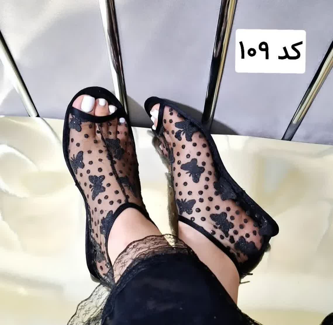 جوراب مچی تدی توری گلدار مشکی
