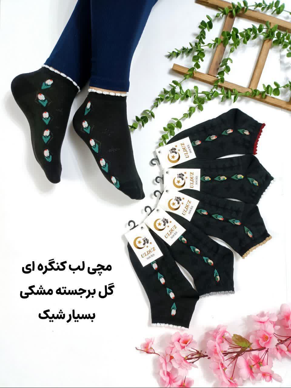 جوراب مچی کش لب کنگره ای طرح گل برجسته