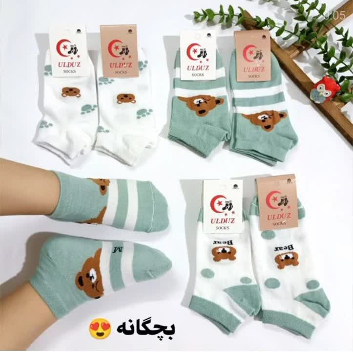 جوراب مچی بچگانه طرح خرس سبز مناسب 3 تا 8 سال