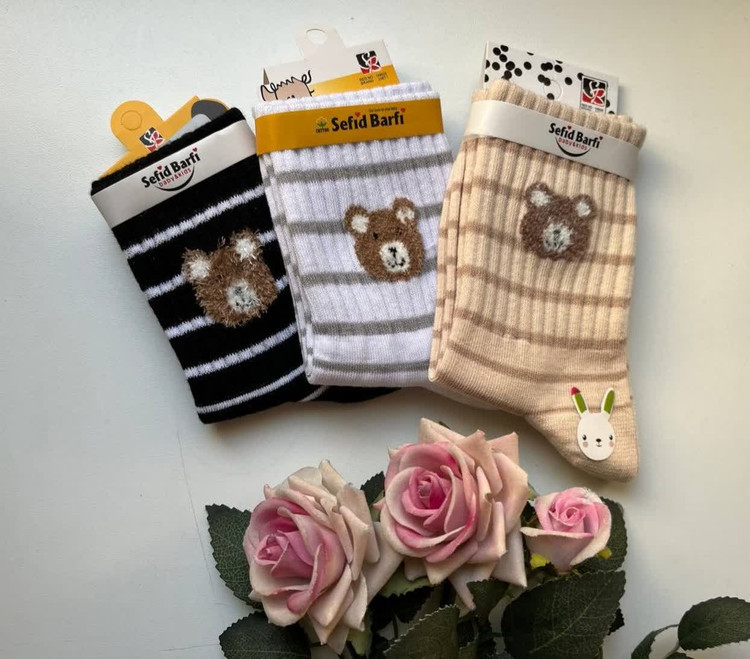 جوراب ساق بلند بچگانه کش انگلیسی طرح خرس بوکله راه راه مناسب 2 تا 10 سال