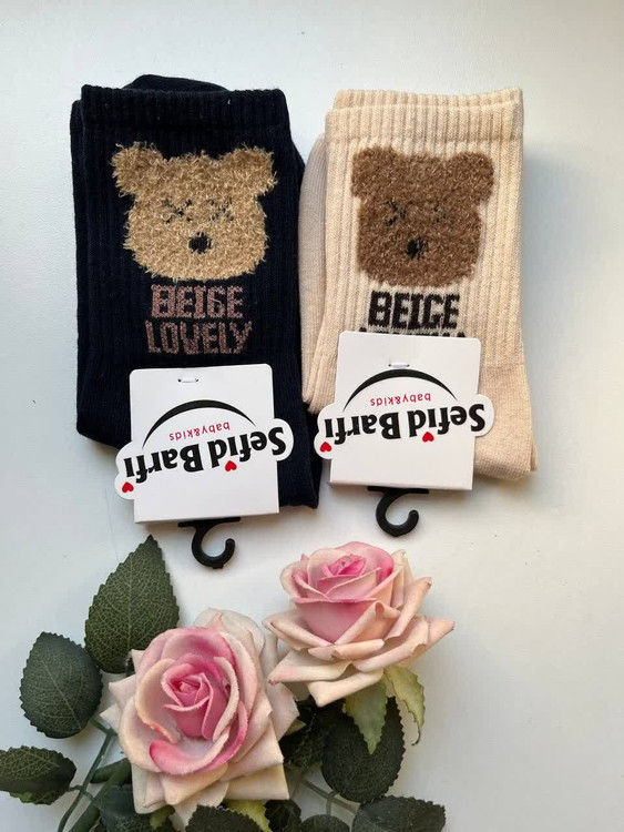 جوراب ساق بلند بچگانه کش انگلیسی طرح صورت خرس بوکله مناسب 4 تا 10 سال