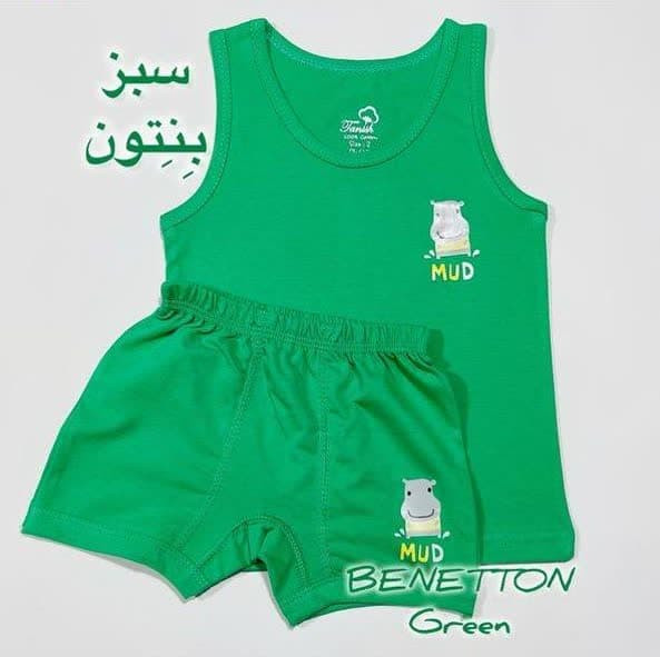 ست رکابی و شورت پادار پسرانه تانیش رنگ سبز مناسب ۲ تا ۱۲ سال