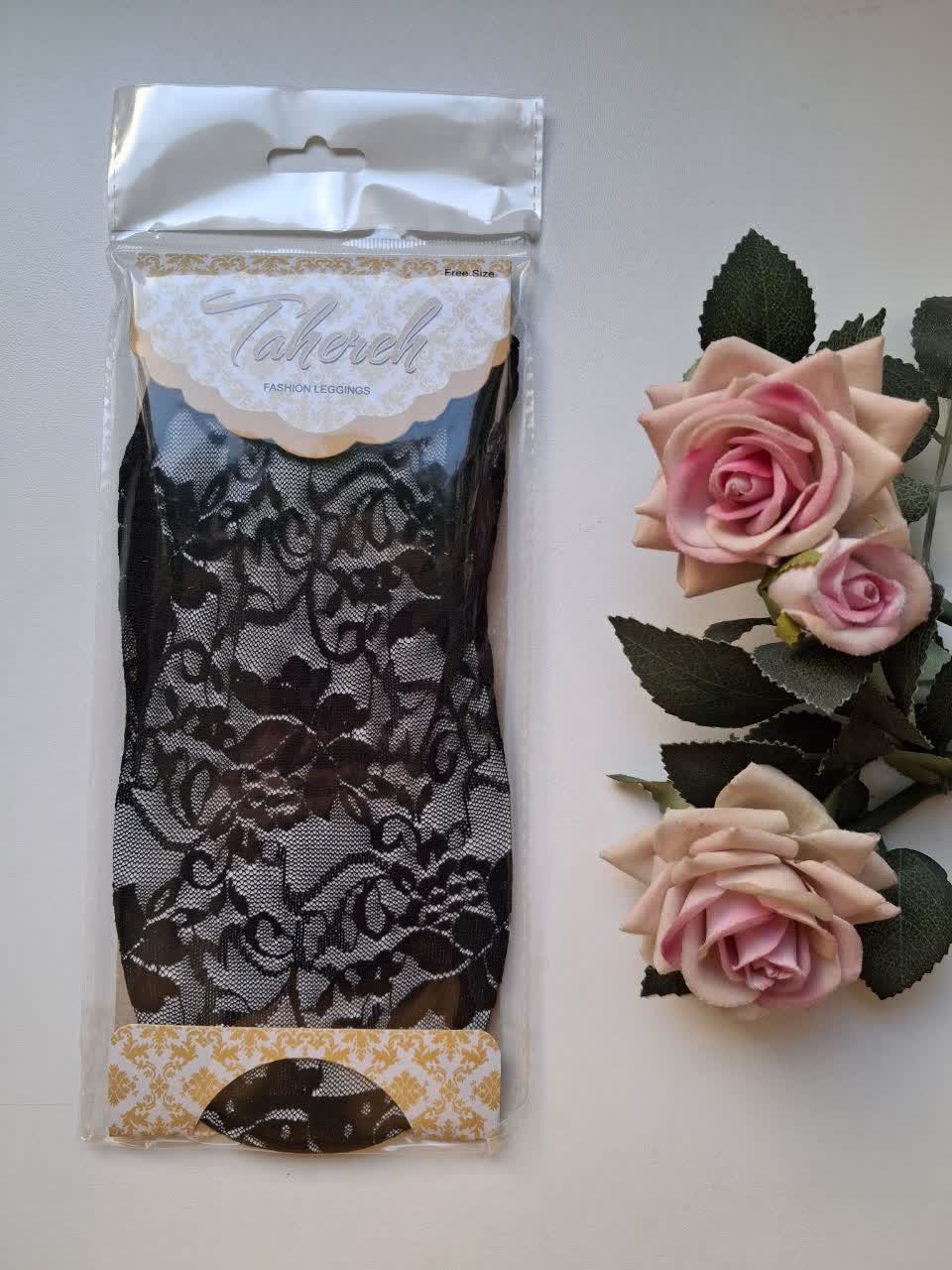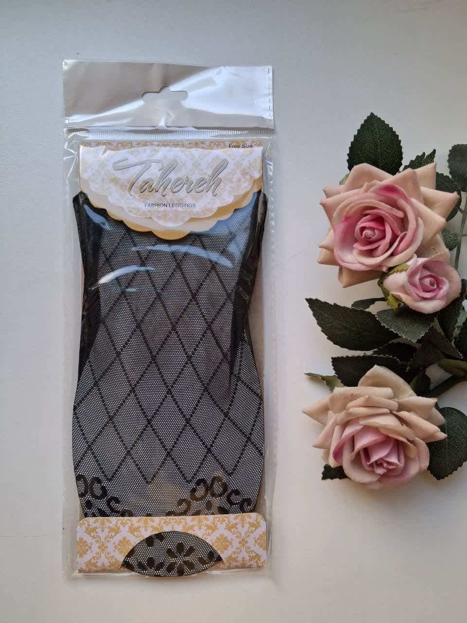جوراب ساقدار گیپور طاهره طرح لوزی و گل رز