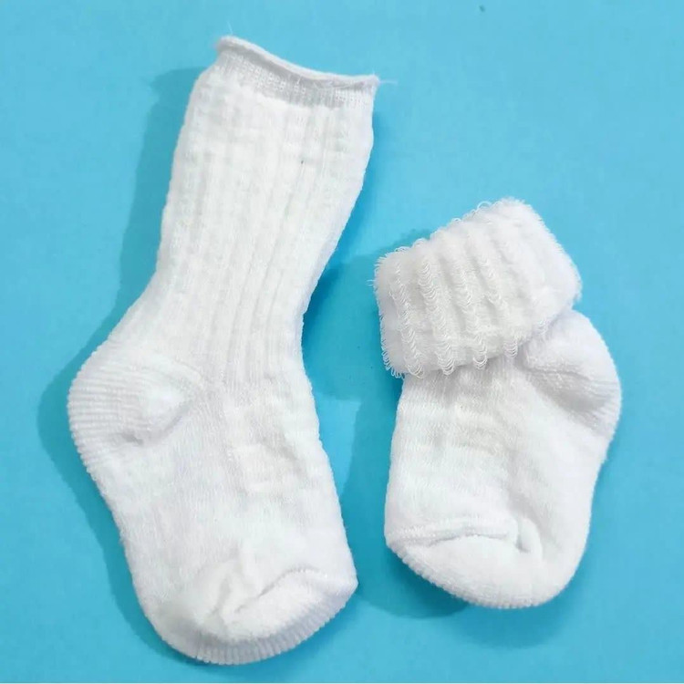 جوراب نوزادی لب برگرد سفید صفر تا ۳ماه