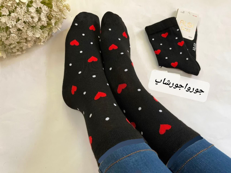 جوراب ساقدار خال خالی و قلب