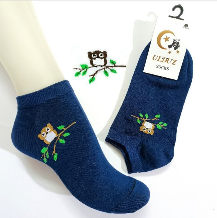 جوراب مچی سورمه ای طرح جغد