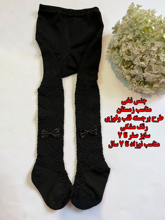 جوراب شلواری مشکی طرح قلب و لوزی مناسب 7تا10 سال