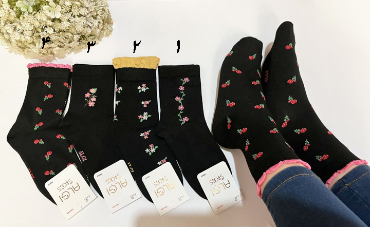 جوراب ساق بلند 4طرح گل کش پفی و کش دالبری