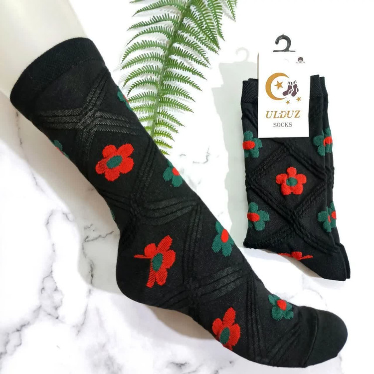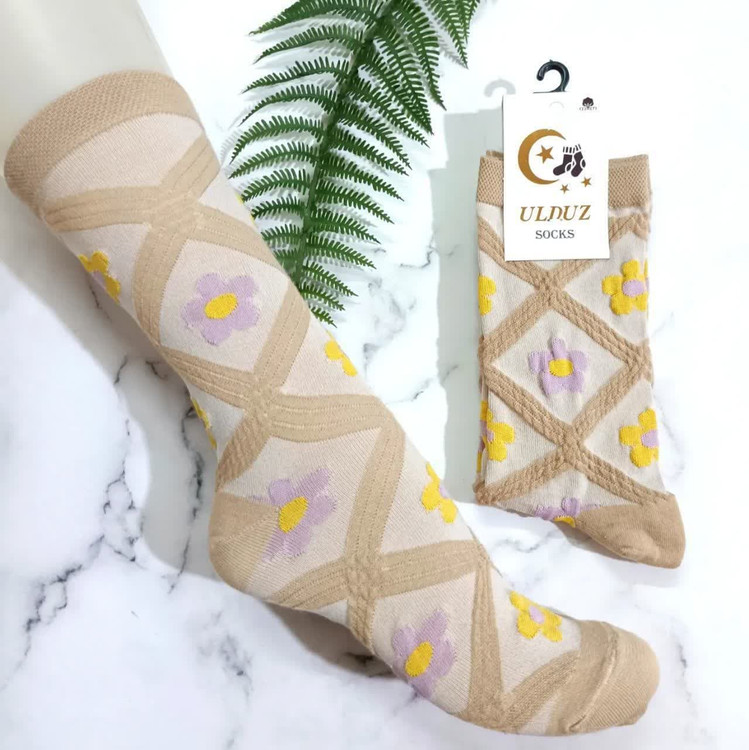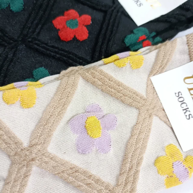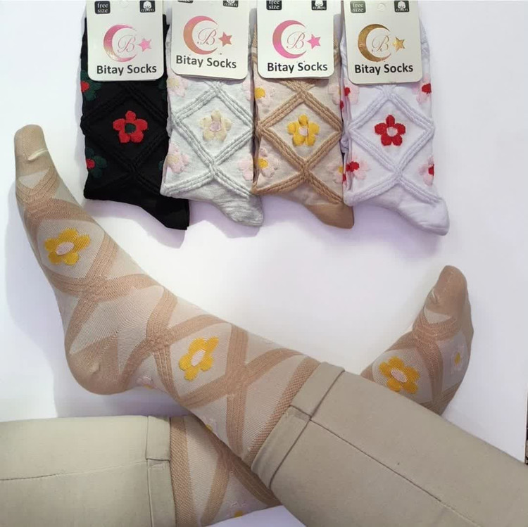 جوراب ساق بلند طرح گل و لوزی برجسته