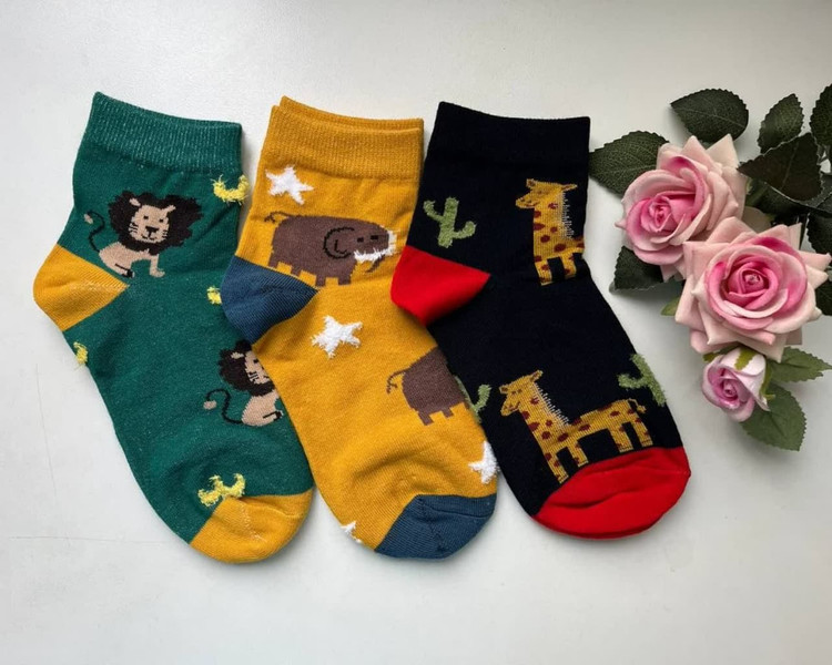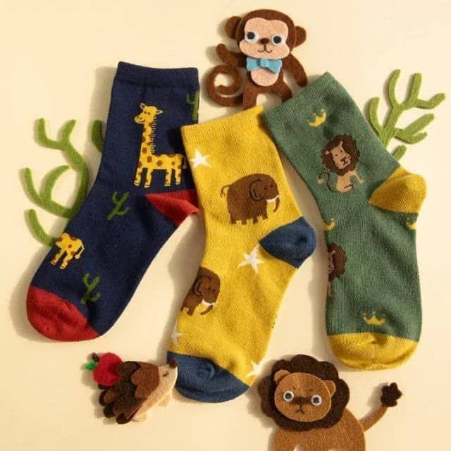 جوراب ساقدار طرح حیوانات جنگل مناسب حدود 3 تا 18 ماه