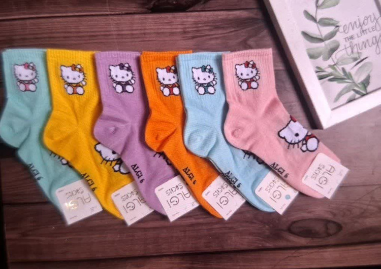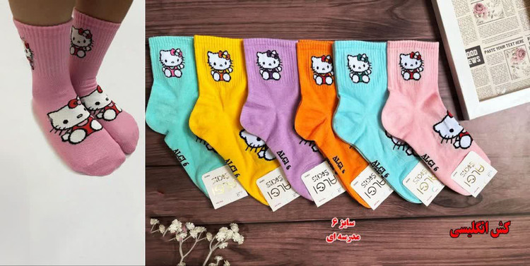 جوراب ساقدار دخترانه کش انگلیسی طرح کیتی مناسب حدود 6 تا 10 سال