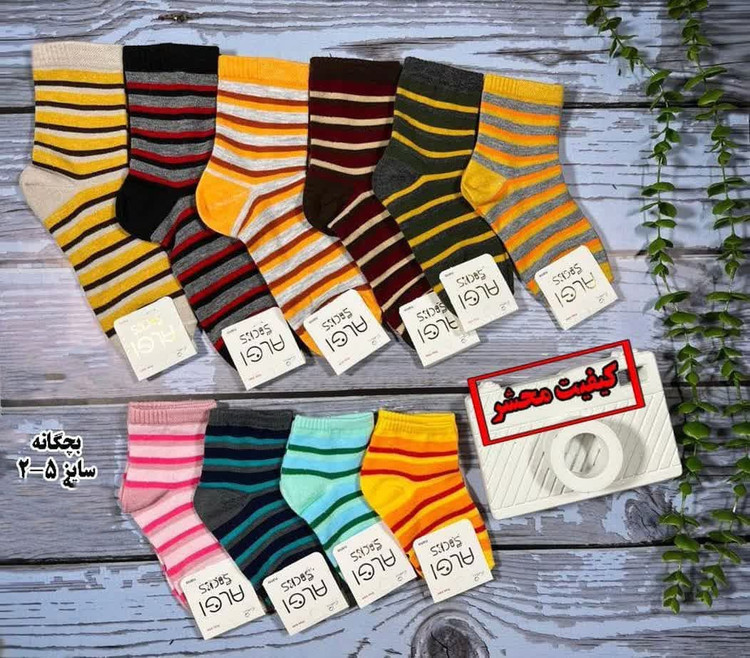 جوراب ساقدار بچگانه طرح راه راه رنگی مناسب حدود 2 تا 10 سال