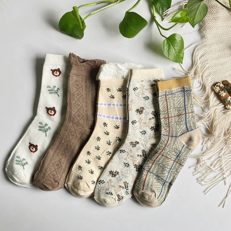 جوراب ساق بلند کش پفی و کش ساده طرحدار میکس