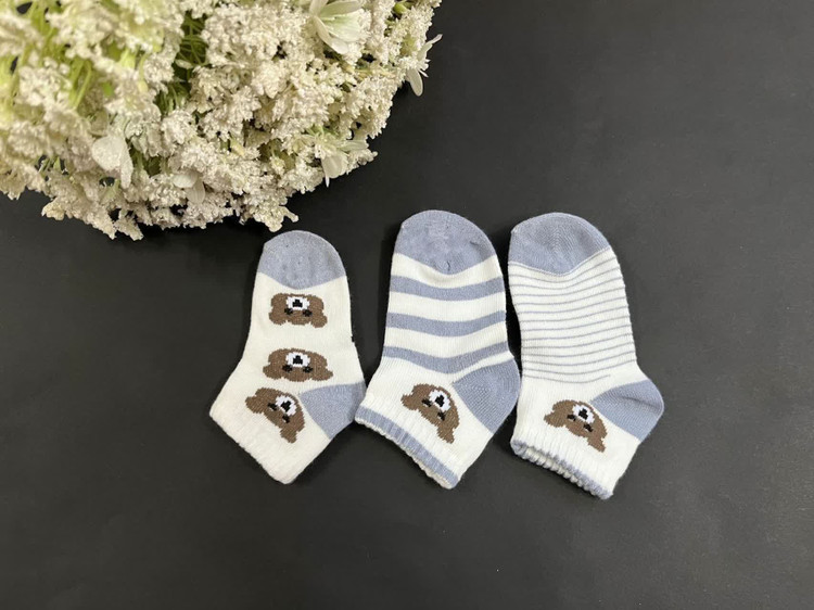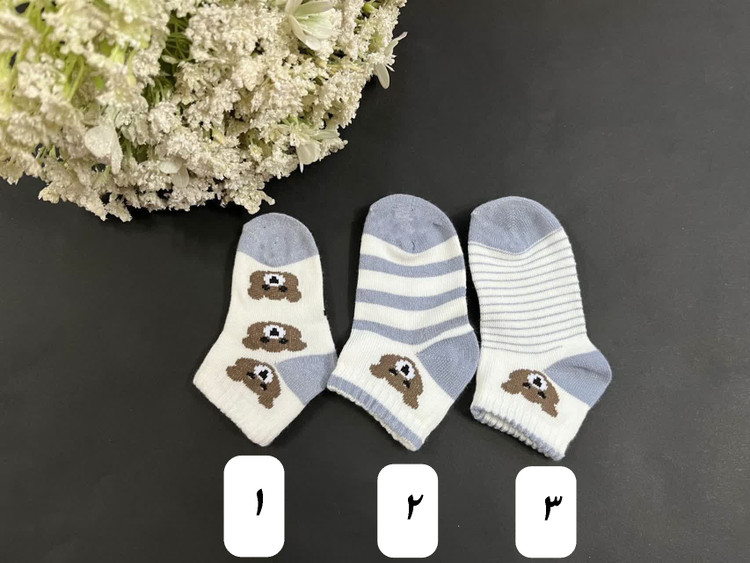 جوراب طرح تدی آبی مناسب نوزاد تا حدود ۳ سال