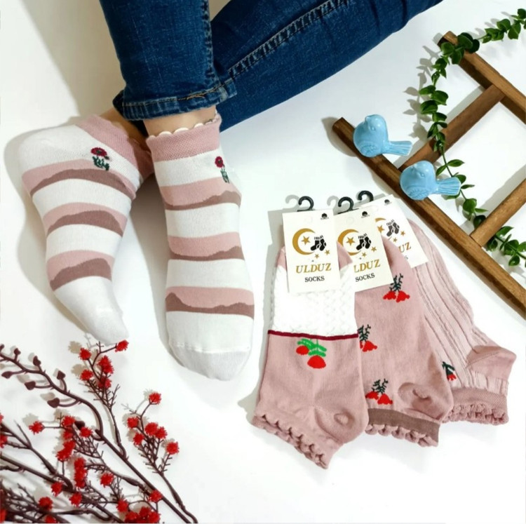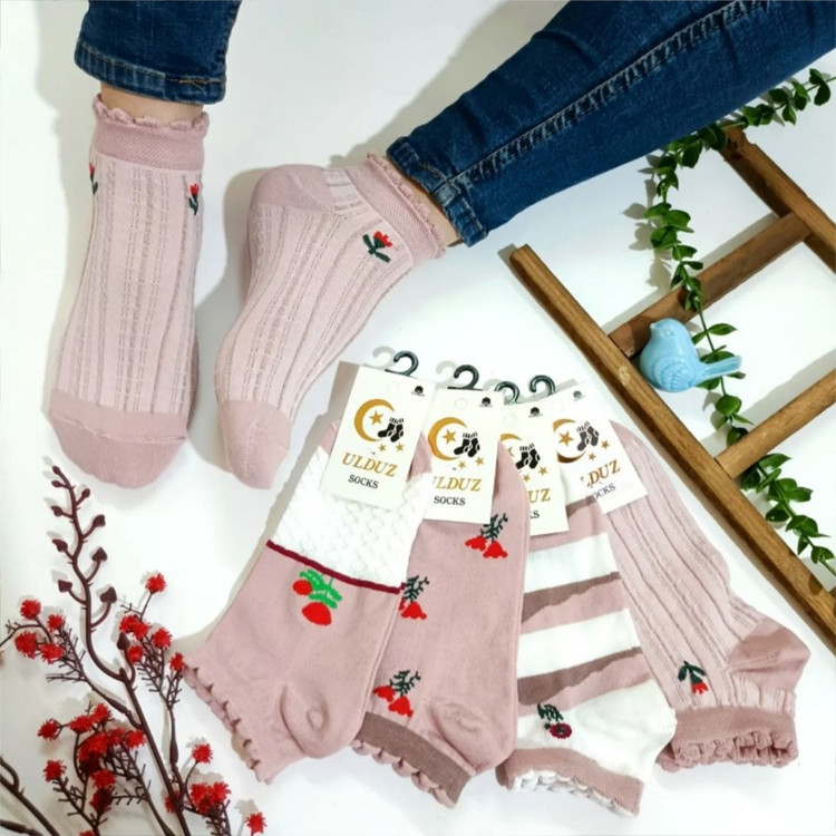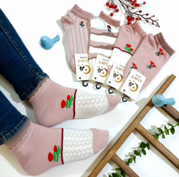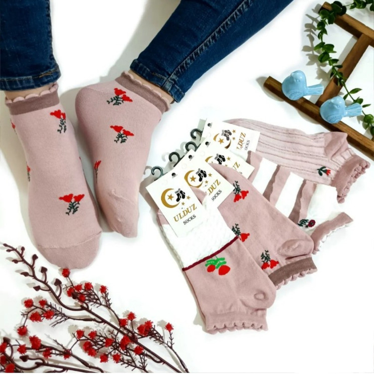 جوراب مچی لب کنگره ای کالباسی طرح گل