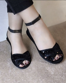 پاپوش کف چرم جلوباز ضربدری طرح پولکی