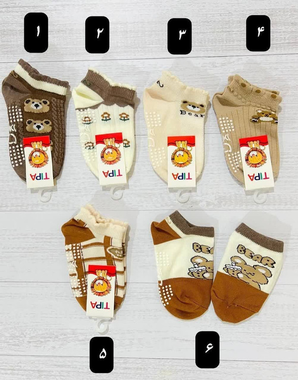 جوراب کف استپدار طرح خرس تم کرم قهوه ای مناسب حدود 9ماه تا 4سال