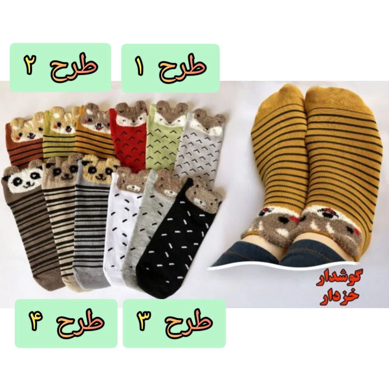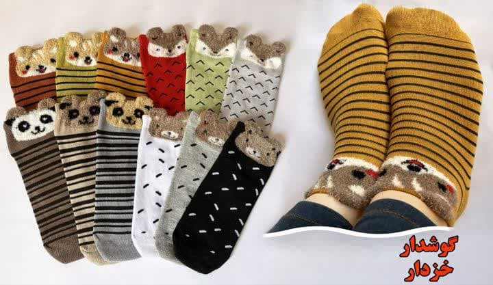 جوراب مچی زنانه طرح حیوانات گوشدار خزدار