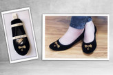 پاپوش کف چرم جلو بسته مخملی طرح پاپیون