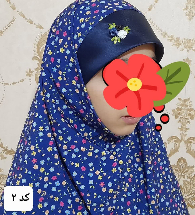 مقنعه دخترانه طرح گل ریز زمینه سورمه ای مناسب 1 تا 12 سال