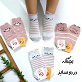 جوراب بچگانه گوشدار طرح گربه کالباسی مناسب ۲تا۹ سال