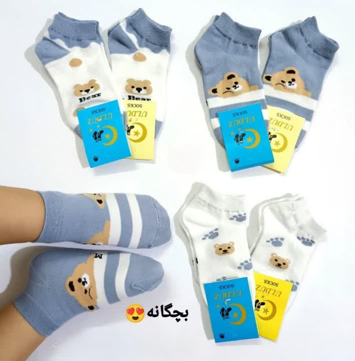 جوراب مچی بچگانه طرح خرس طوسی مناسب 3 تا 8 سال