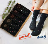 جوراب ساق بلند زنانه طرح گل زمینه مشکی