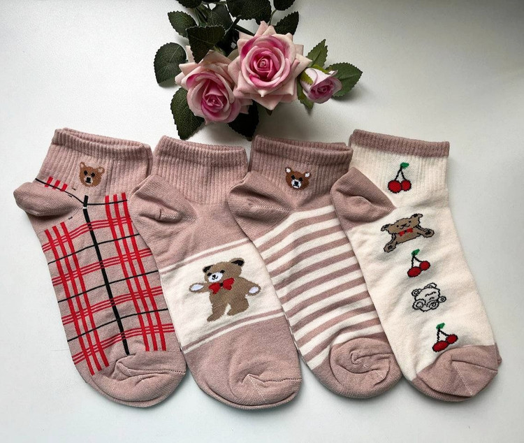 جوراب مچدار ۴ طرح تدی تم کرم نسکافه ای