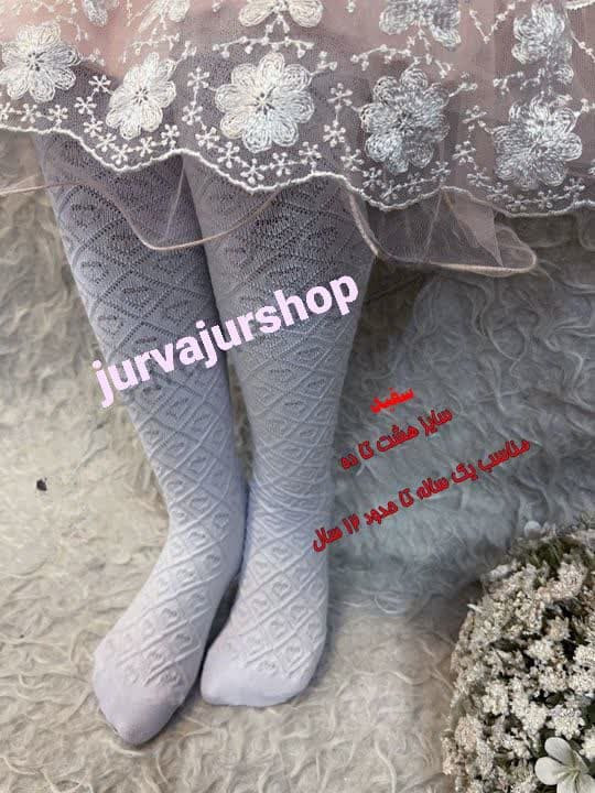 جوراب شلواری سفید طرح قلب و لوزی مناسب 8 تا ۱2 سال