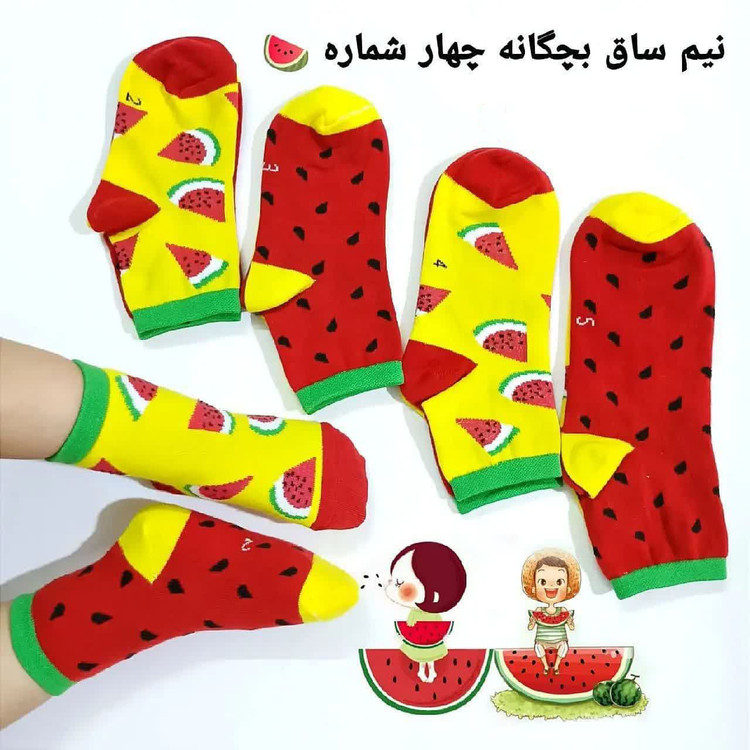 جوراب نیمساق تابه تا طرح هندوانه مناسب حدود ۲ تا ۸ سال