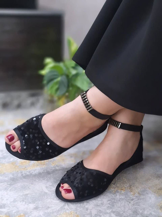 پاپوش کف چرم جلوباز طرح پولکی