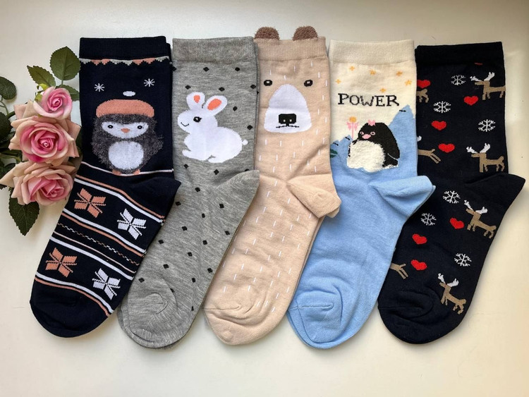 جوراب ساق بلند ۵ طرح میکس حیوانات فانتزی