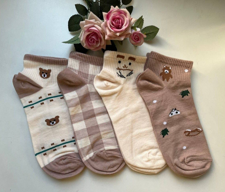جوراب مچدار ۴ طرح میکس تم کرم نسکافه ای