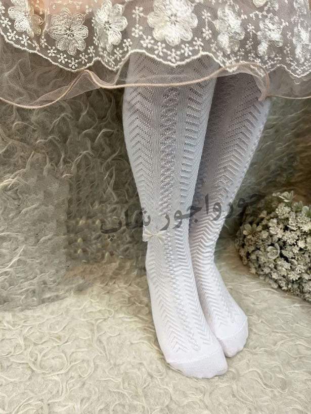 جوراب شلواری سفید طرح تیغ ماهی مناسب نوزاد تا 8سال