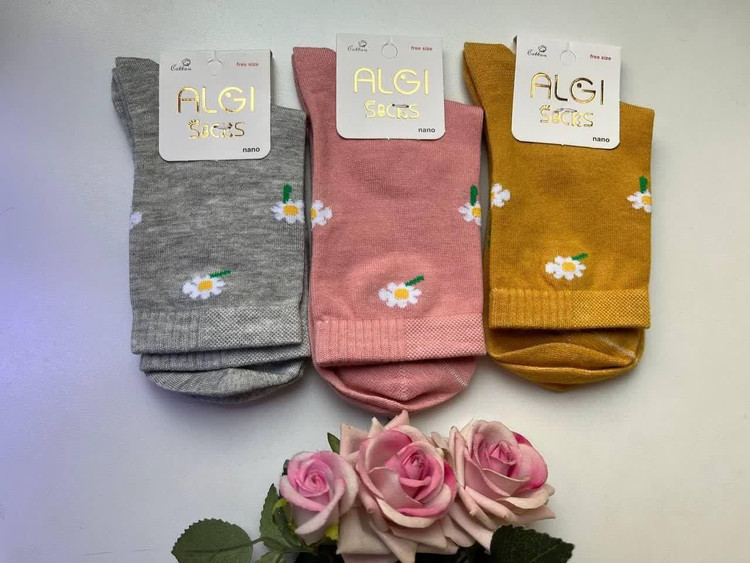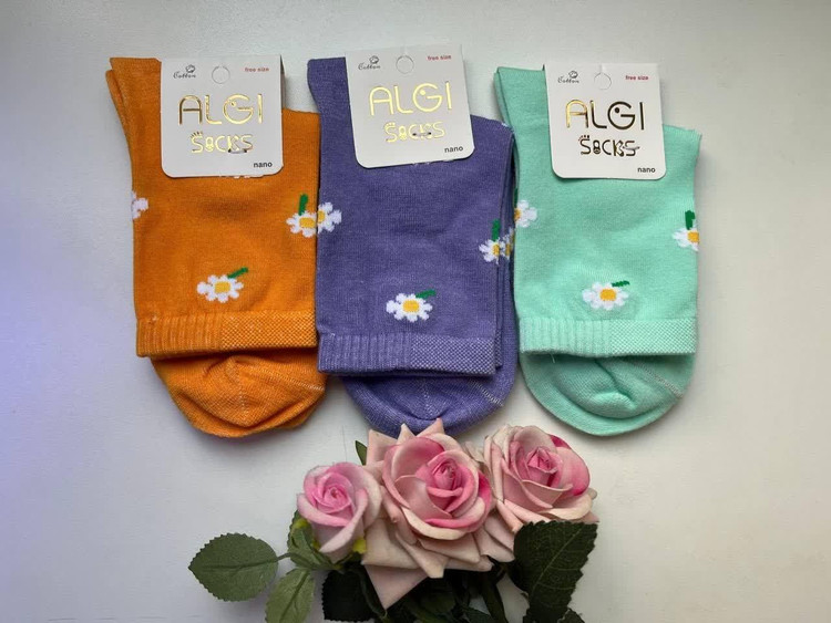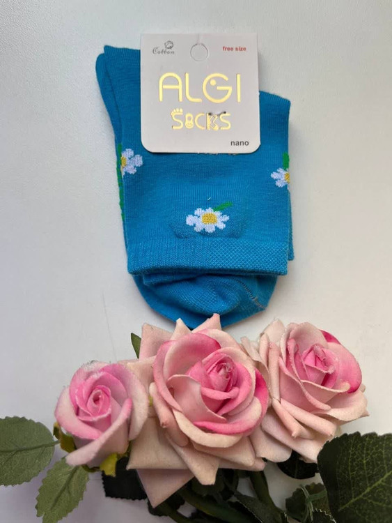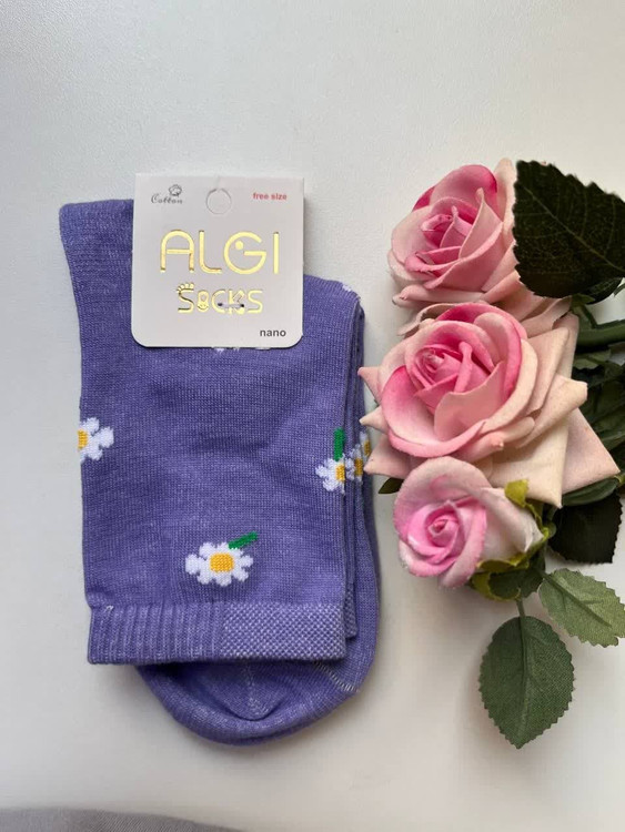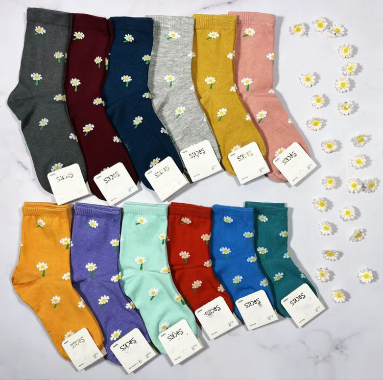 جوراب ساقدار دخترانه طرح گل بابونه مناسب 2 تا 11 سال