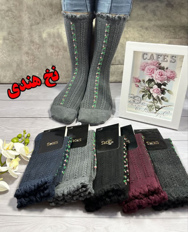 جوراب ساق بلند مدل گندمی برجسته گلدار