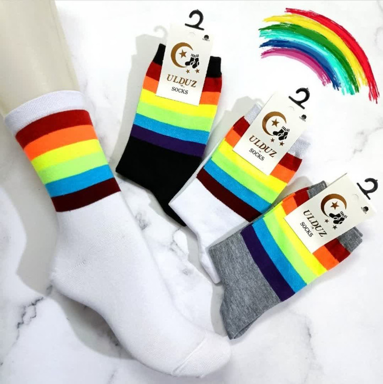 جوراب ساقدار زنانه و بچگانه ساده ساق رنگین کمان مناسب بالای 10 سال
