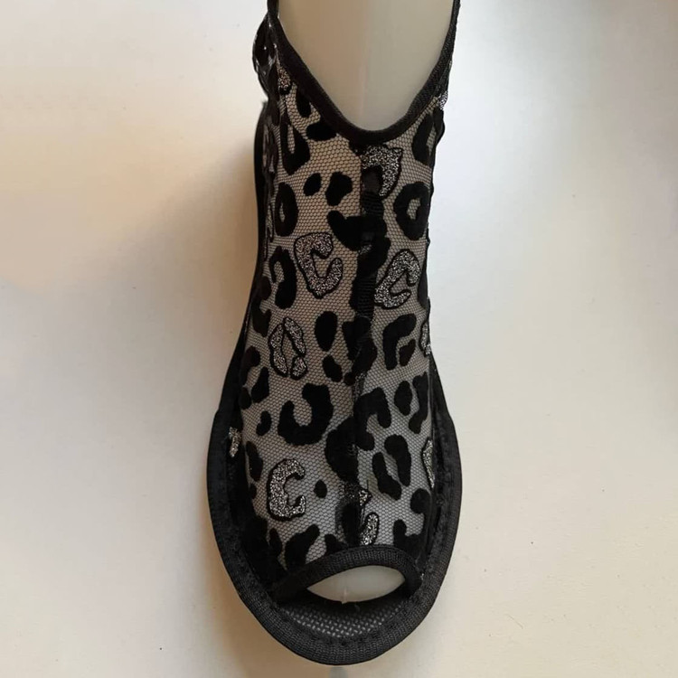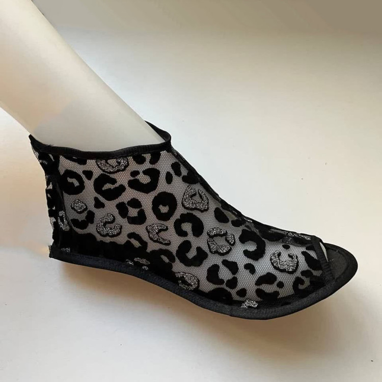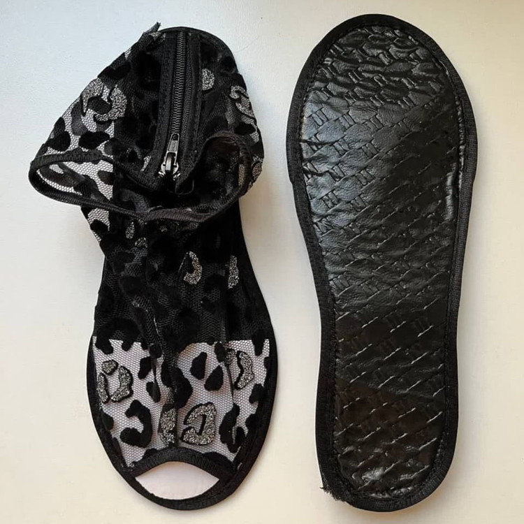 پاپوش کف چرم طرح پلنگی شیشه ای پشت زیپدار
