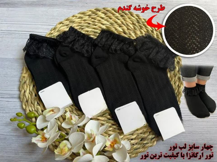 جوراب مچی لب تور مشکی دخترانه طرح گندمی