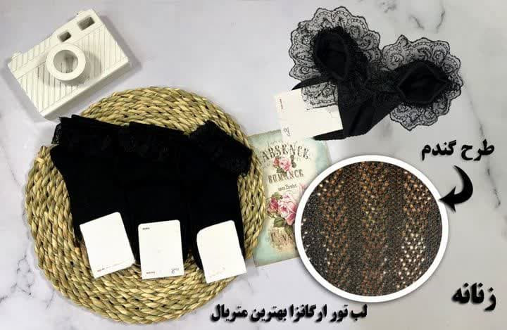 جوراب مچی لب تور مشکی طرح گندمی