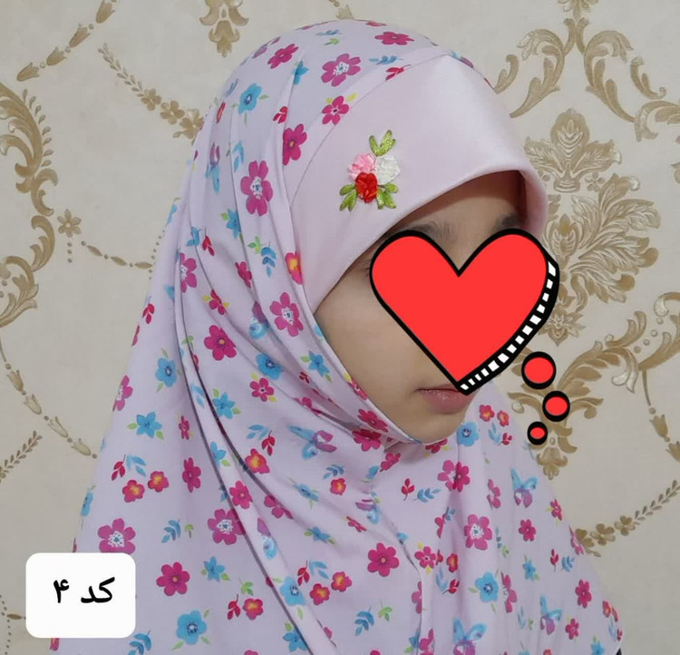مقنعه دخترانه طرح گل و پروانه زمینه صورتی مناسب 1 تا 12 سال