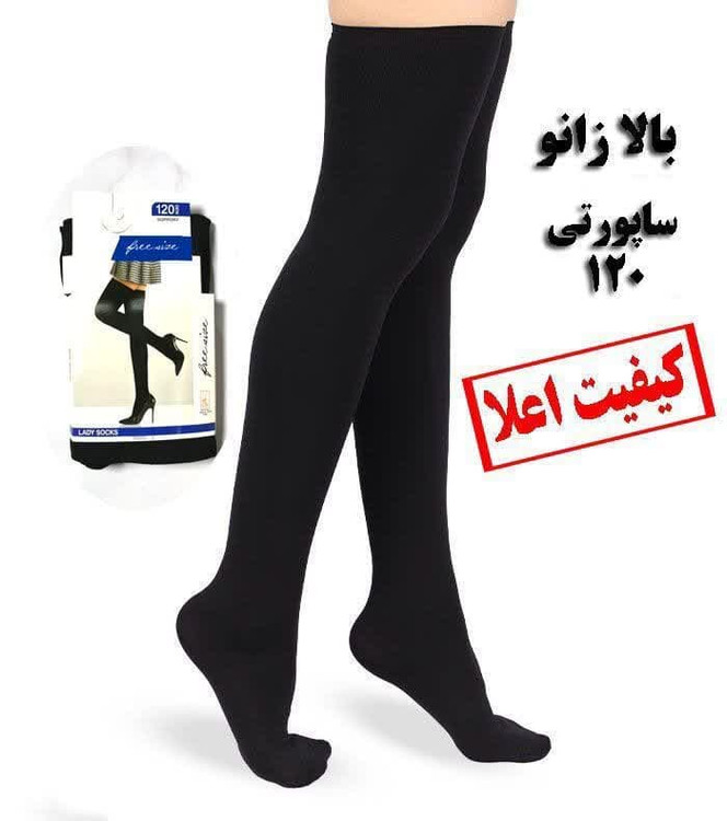 جوراب بالا زانو ساده مشکی و کرم ساپورتی ضخامت 120 بسیار ضخیم